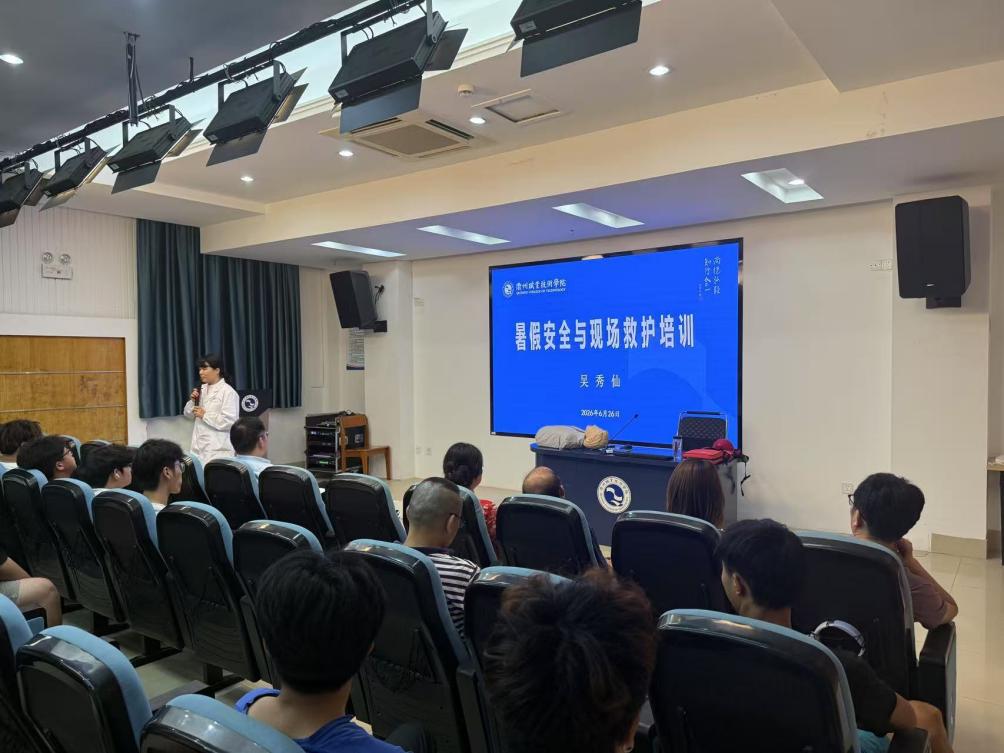 为切实强化暑期安全保障,提升师生应急救护能力,6月26日下午,图书馆在二号报告厅开展“暑假安全与现场救护”培训讲座。本次活动由图书馆副馆长、医学院副教授吴秀仙主讲,教辅支部党员及各二级学院80余名学生代表参与学习。