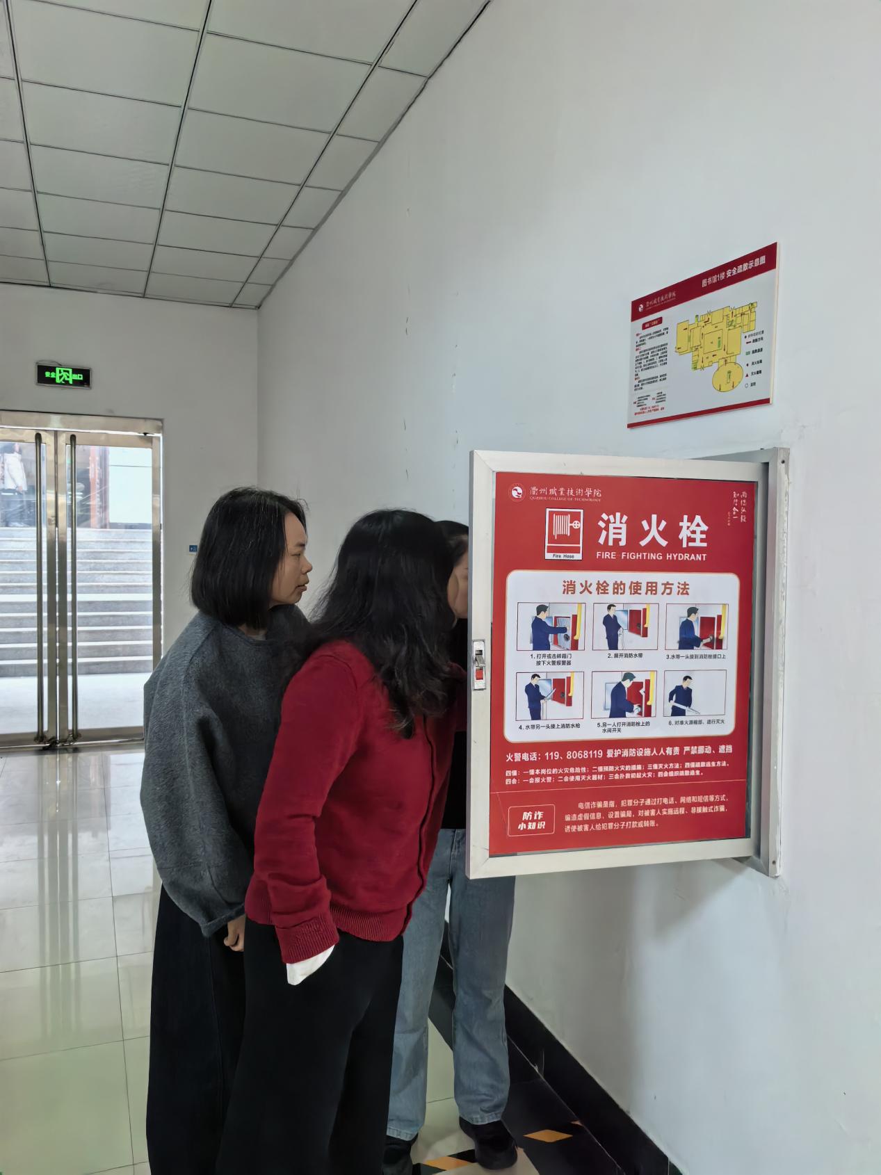 随后,全体参训人员前往图书馆(档案馆)重点区域开展实地巡查。沿着安全消防通道,大家逐一熟悉逃生路线布局;仔细核查灭火器、消防栓等器材的存放位置、完好状态及压力情况;认真检查防火门的关闭密封性、启闭灵活性与安全标识完整性,对发现的细节问题现场记录并明确整改方向,确保隐患排查不留角。